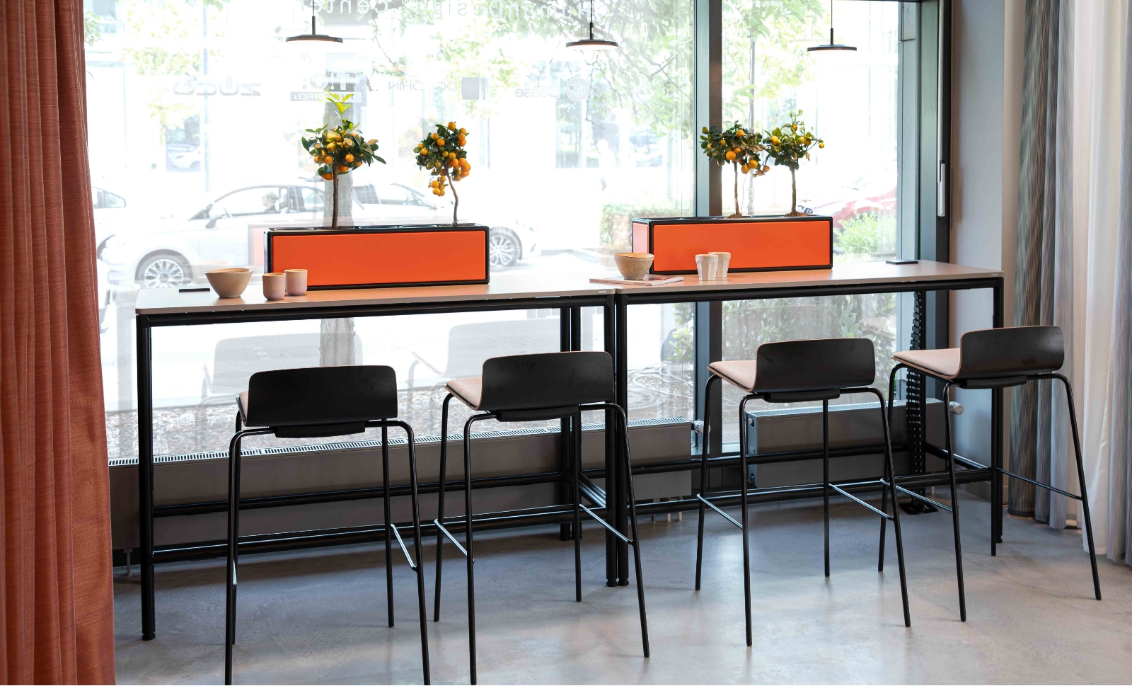The high S-desk convinces with its timeless elegance and is indispensable in the modern office. Design your working environment in a contemporary way with this high table and promote agile working in the office. Whether standing or sitting - meetings with the S-Desk bring dynamism to everyday working life.