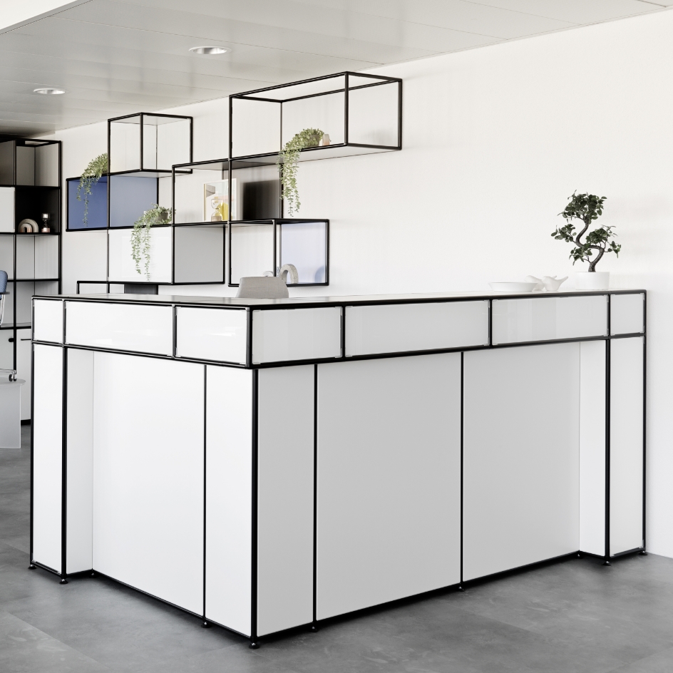 • Système de meubles modulaires à tubes porteurs avec cadre protégé par un brevet.